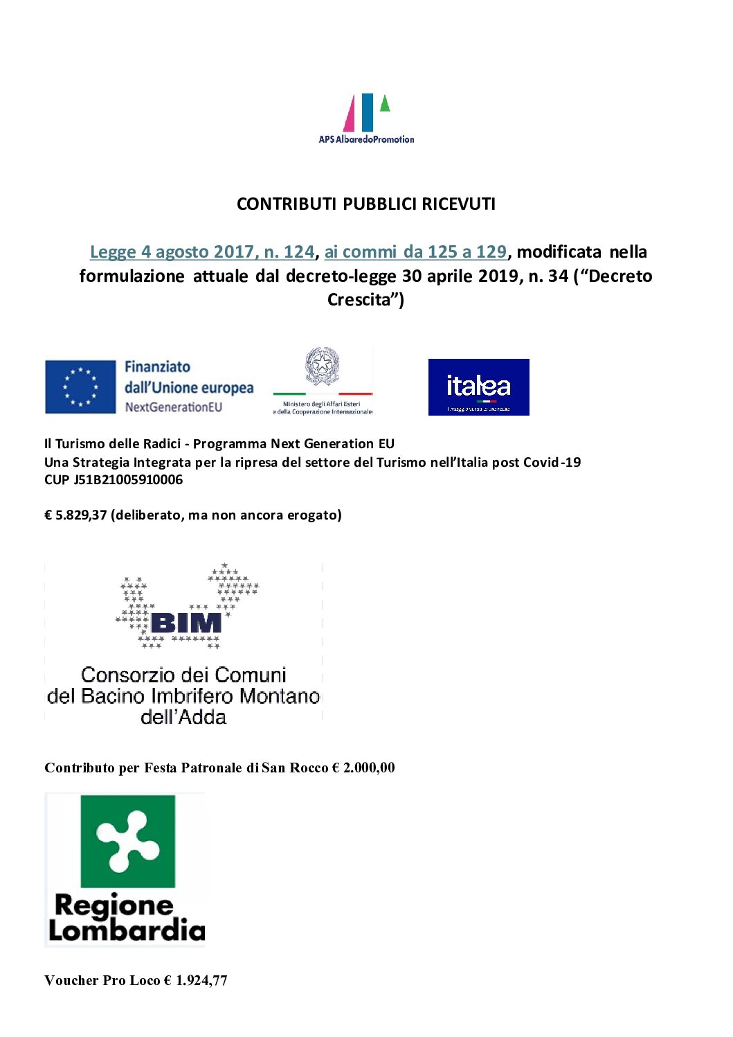 CONTRIBUTI PUBBLICI RICEVUTI