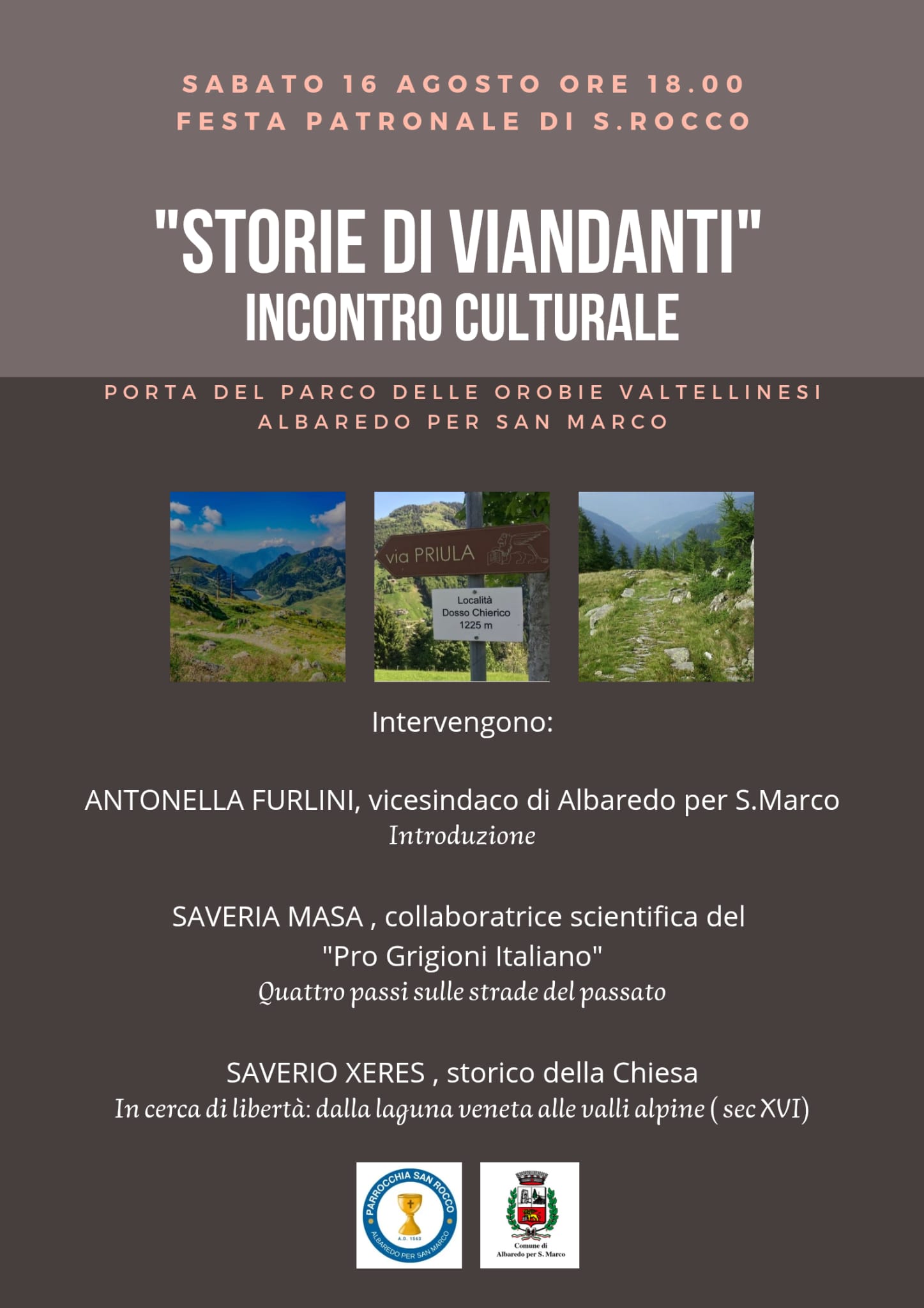 SABATO 16 AGOSTO PRESSO LA PORTA DEL PARCO DELLE OROBIE VALTELLINESI IN ALBAREDO PER SAN MARCO